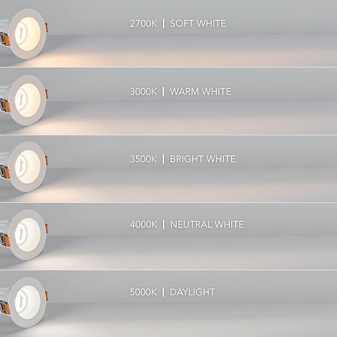 - Customizable Color Temperature – 5 CCT options (2700K, 3000K, 3500K, 4000K, 5000K) for personalized lighting, easily adjustable with the switch inside the included junction box.